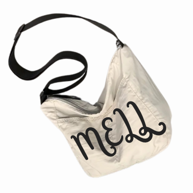 - Unieke Personal Touch: Elke tas wordt met de hand gepersonaliseerd met de naam "MELL" in stijlvolle sjabloonletters, wat zorgt voor een exclusief en persoonlijk tintje.